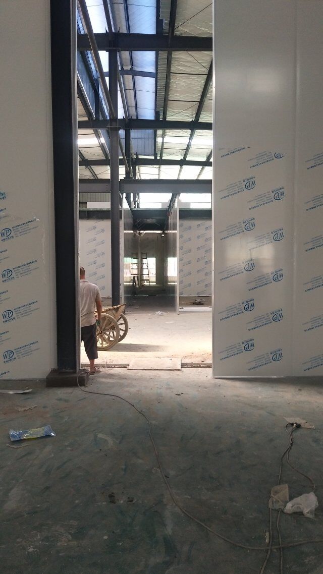 成都天厨生物科技有限公司厂房装修现场,墙板施工中