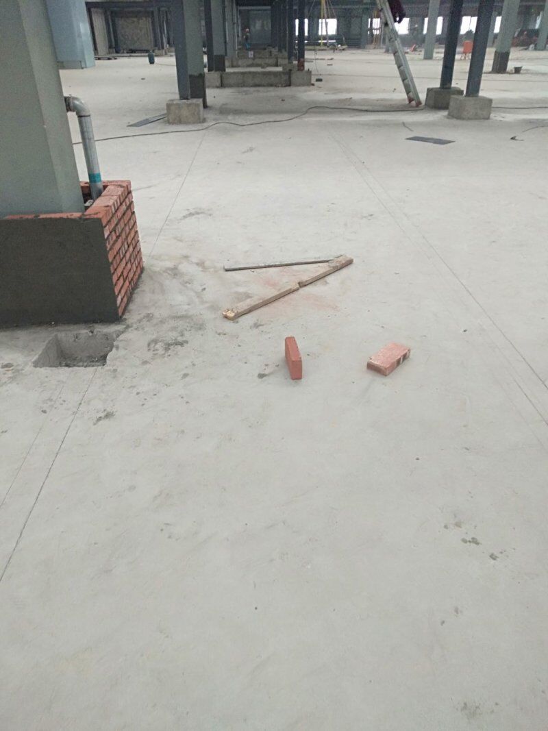 四川吉百兴食品有限公司中央厨房施工现场,地坪洒水,放线