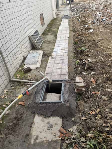 1,排水管沟破碎及门洞破碎,完成分项目进度100% 2,门洞恢复,完成分项进度30% 3,斜坡破碎,完成分项进度60% 4,雨棚下排水沟,检查井,完成分项目进度60% 5,雨棚下面,地坪找平及混凝土浇筑前期准备工作,完成分项进度30% 6,排水管安装,完成分项进度90%